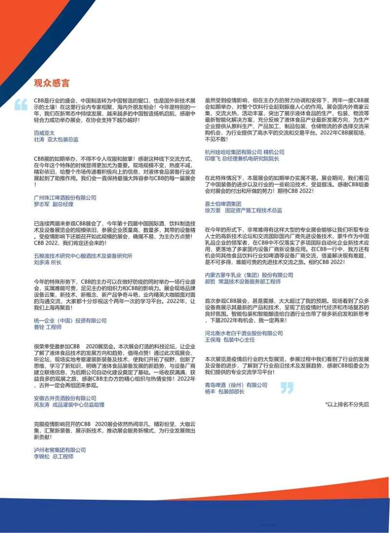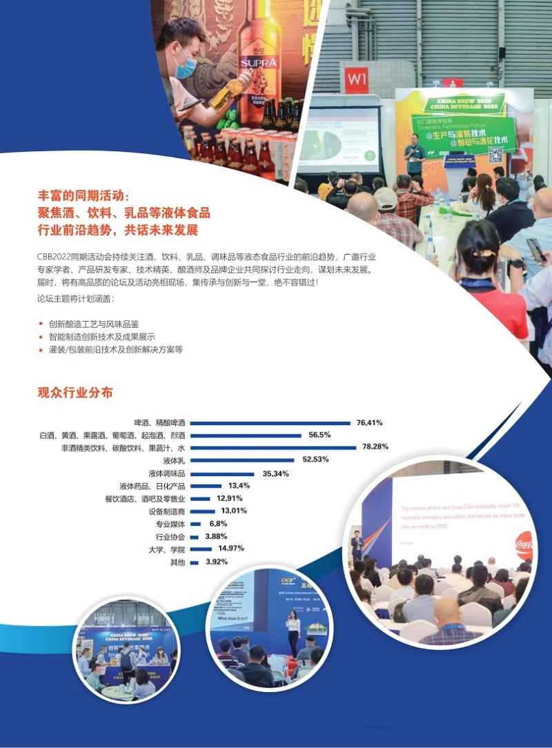 Triển lãm Công nghệ và Thiết bị Sản xuất Đồ uống Quốc tế Thượng Hải (CBB) trước đây có tổng diện tích 92.000 mét vuông, với 869 nhà triển lãm và 56.315 người tham dự. Triển lãm Bia Thủ công Quốc tế Trung Quốc được tổ chức đồng thời, quy tụ giới tinh hoa trong ngành để giới thiệu toàn diện những thành tựu mới nhất trong lĩnh vực bia thủ công và tạo ra nền tảng giao lưu bia thủ công lớn nhất và cao cấp nhất trong khu vực châu Á - Thái Bình Dương. Là một nền tảng giao lưu cốt lõi cho ngành công nghiệp thực phẩm lỏng trong khu vực châu Á - Thái Bình Dương, CBB luôn nhận được sự quan tâm của ngành, với hơn 60 phương tiện truyền thông chuyên nghiệp trong và ngoài nước đưa tin và quảng bá toàn diện. (Bản quyền bài viết thuộc về JUZHAN; nghiêm cấm sao chép trái phép.)