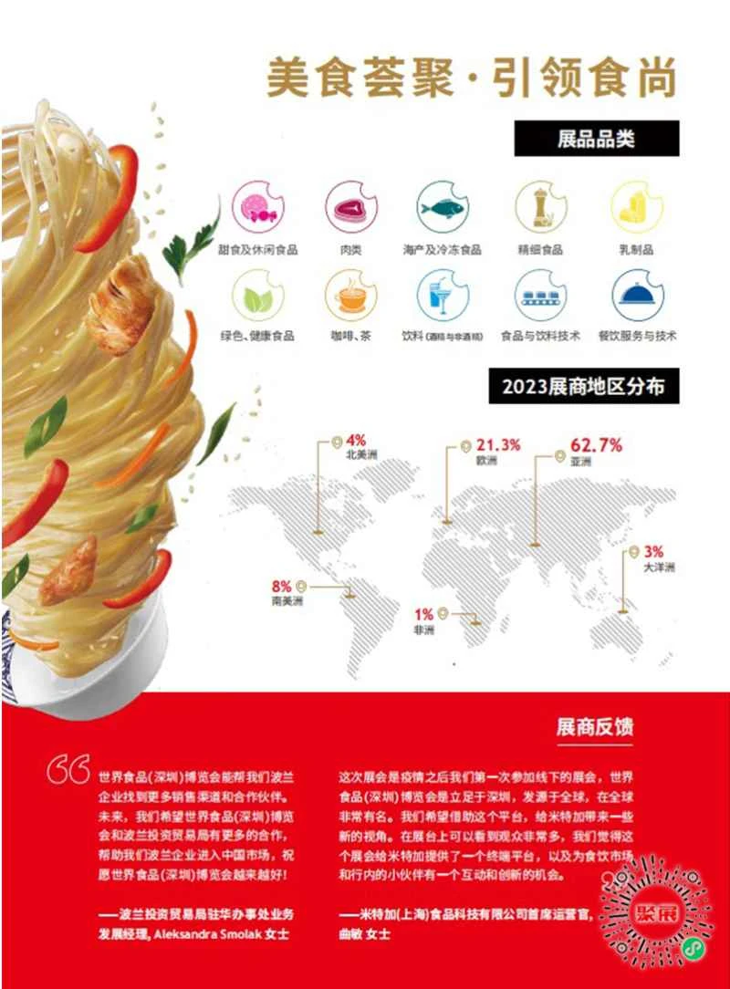Triển lãm năm nay có diện tích 35.000 mét vuông và dự kiến thu hút hơn 700 công ty trong và ngoài nước tham gia. Các sản phẩm trưng bày sẽ bao gồm toàn bộ chuỗi ngành, từ bánh kẹo, hải sản, thực phẩm cao cấp, thực phẩm xanh và tốt cho sức khỏe, thịt, cà phê và trà, sản phẩm sữa, dịch vụ ăn uống và công nghệ đóng gói thực phẩm, và sẽ tiếp tục củng cố tầm ảnh hưởng quốc tế của ngành tại miền Nam Trung Quốc.